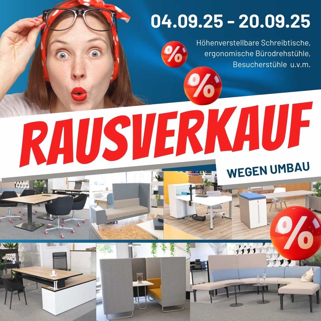 Wegen Umbau starten wir einen einmaligen Rausverkauf: Hochwertige Ausstellungsstücke wie höhenverstellbare Schreibtische, ergonomische Drehstühle und Besucherstühle sind radikal reduziert – teilweise bis zu 70 %! Ob fürs Homeoffice oder die Firmenausstattung: Jetzt ist die perfekte Gelegenheit für clevere Schnäppchenjäger. Schnell sein lohnt sich – nur solange der Vorrat reicht!